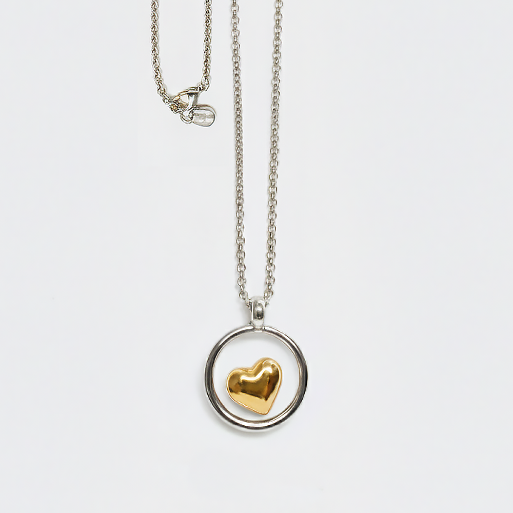 Versatile Chain Necklace Silver Plated with Gold Heart 80cm
